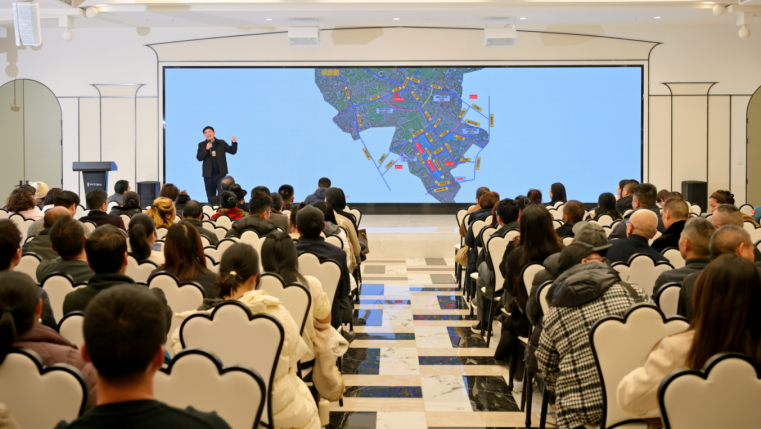 郫都区商务局、安靖镇街道办领导也带来重磅宣讲,详细介绍了园区升级改造项目进展及周边道路新规划。阳光南路、清逸路拓宽工程已顺利完工,未来还将推进海霸王路优化及全兴路延长线建设,进一步打通园区交通脉络,为商户经营赋能。