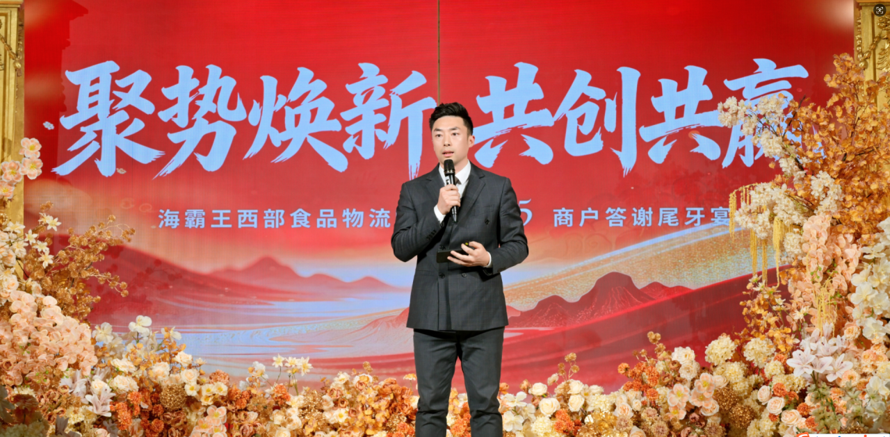 12 月 19 日,海霸王西部食品物流园 2025 年度栋长会、商户交流会暨商家联谊会在馥朵芮礼宴中心成功举办。130 位栋长、300 余名商户代表及郫都区商务局、安靖镇街道办相关领导齐聚,以 “培训 + 宴会” 形式,共话发展、共绘蓝图。